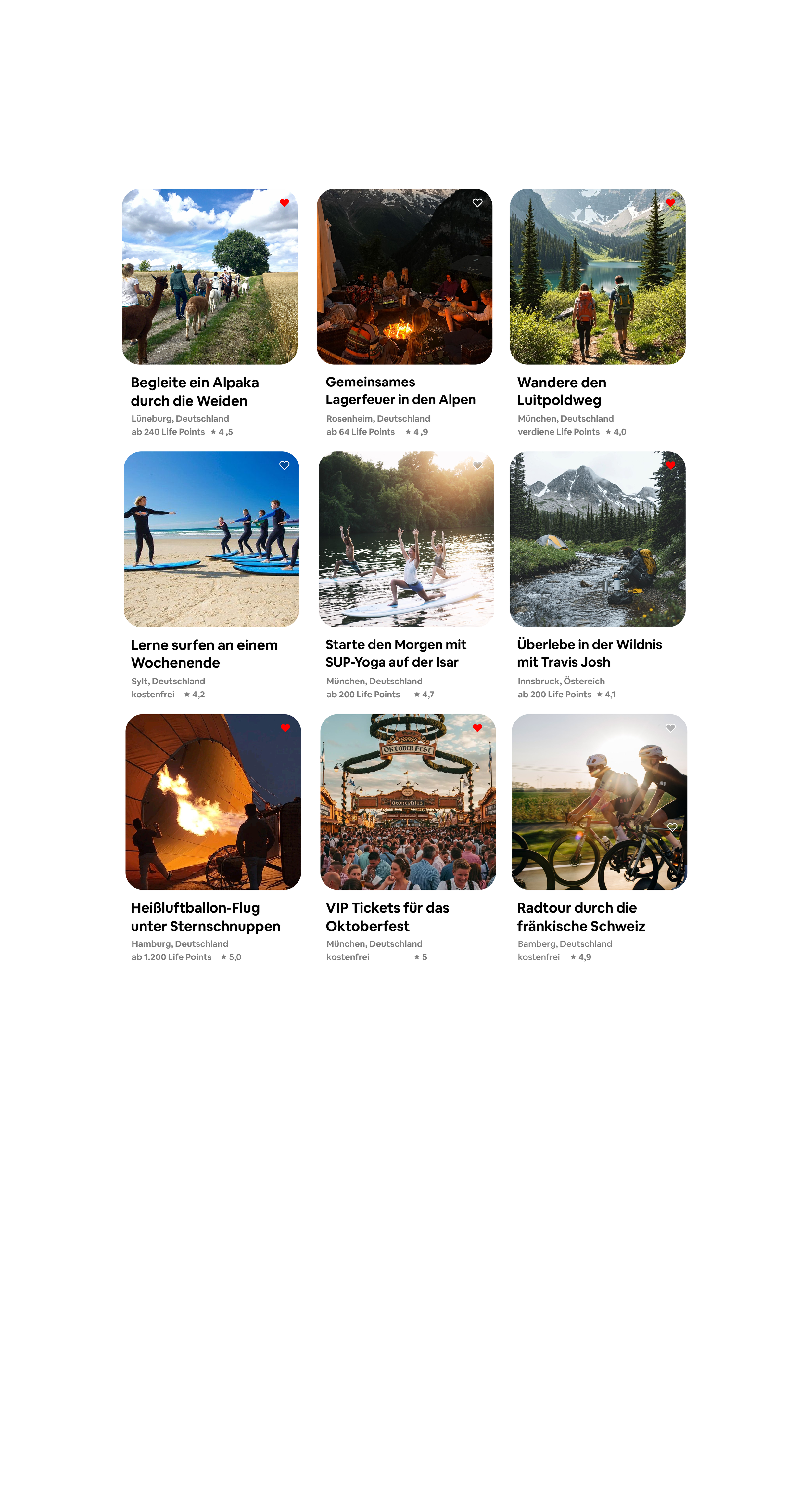 Wähle Ort und Zeit — buche mit deinen Life Points die Aktivität